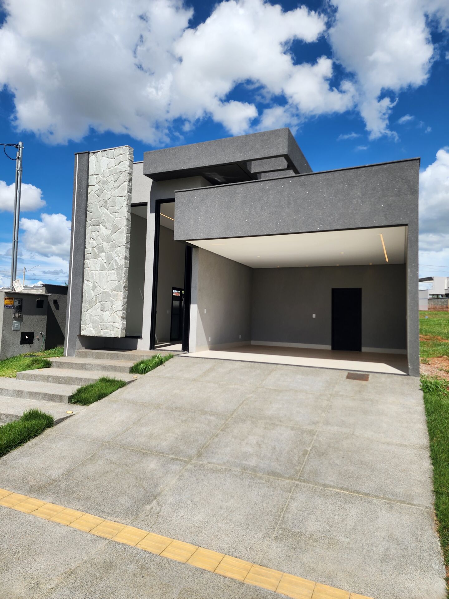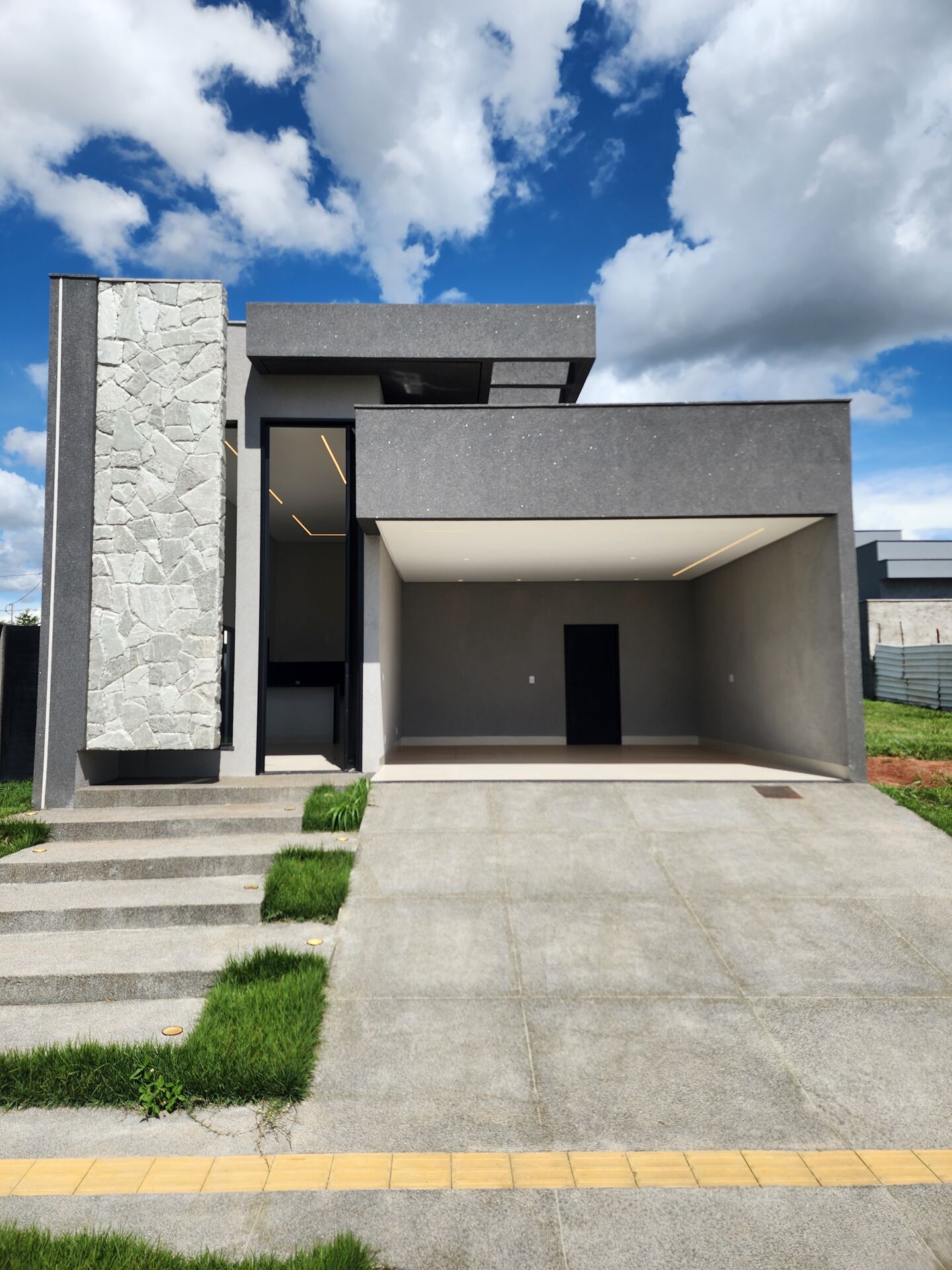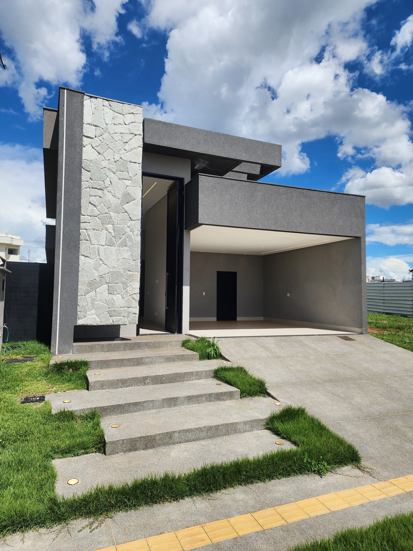 🎯 Fachada moderna com detalhes em Pedra Moledo, trazendo elegância e imponência